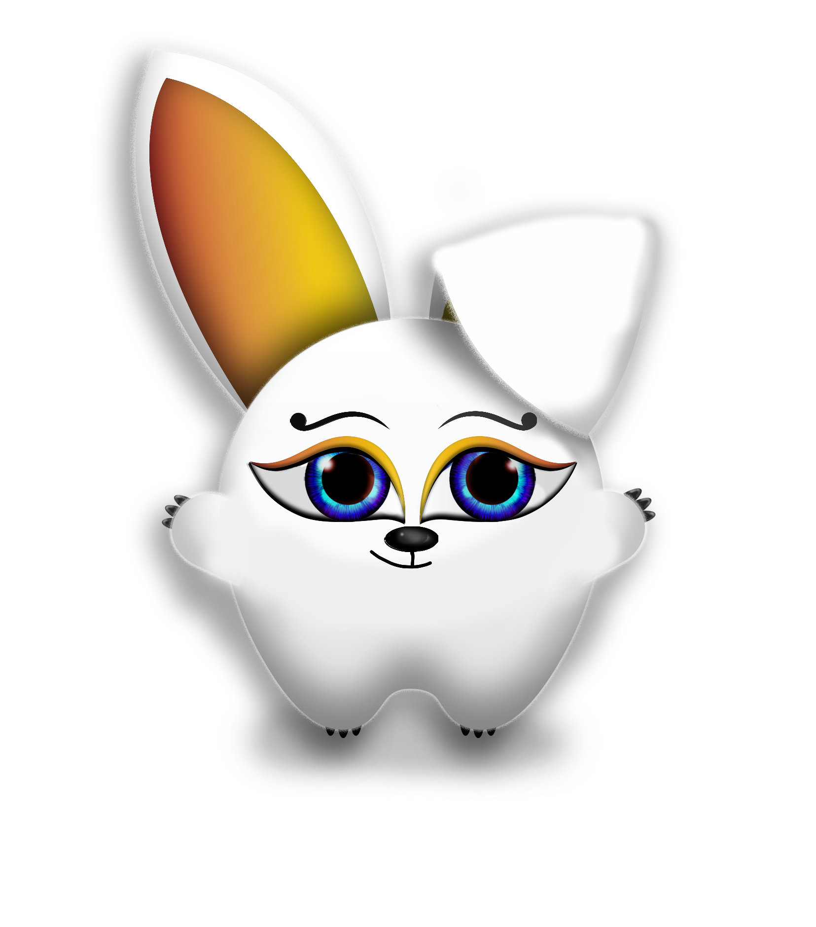 Музя пушистый белого цвета с большими ушами, напоминающими кроличьи, что дает ему возможность слушать все звуки